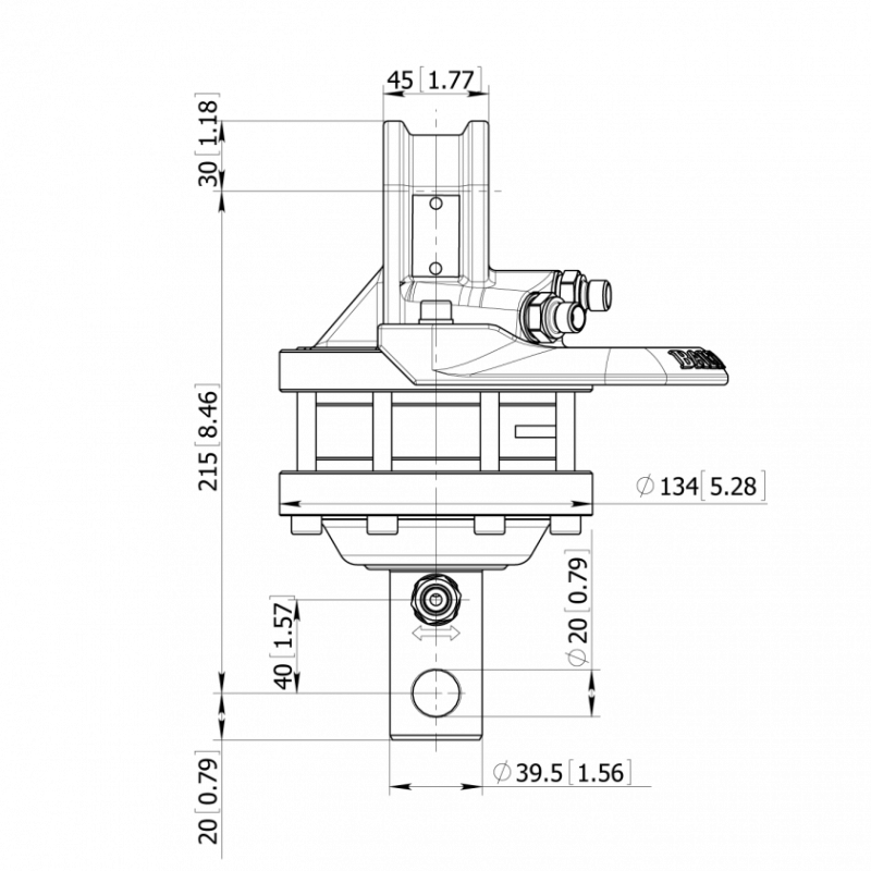 Ülemine ühendus L: 45 mm (1,77 tolli)